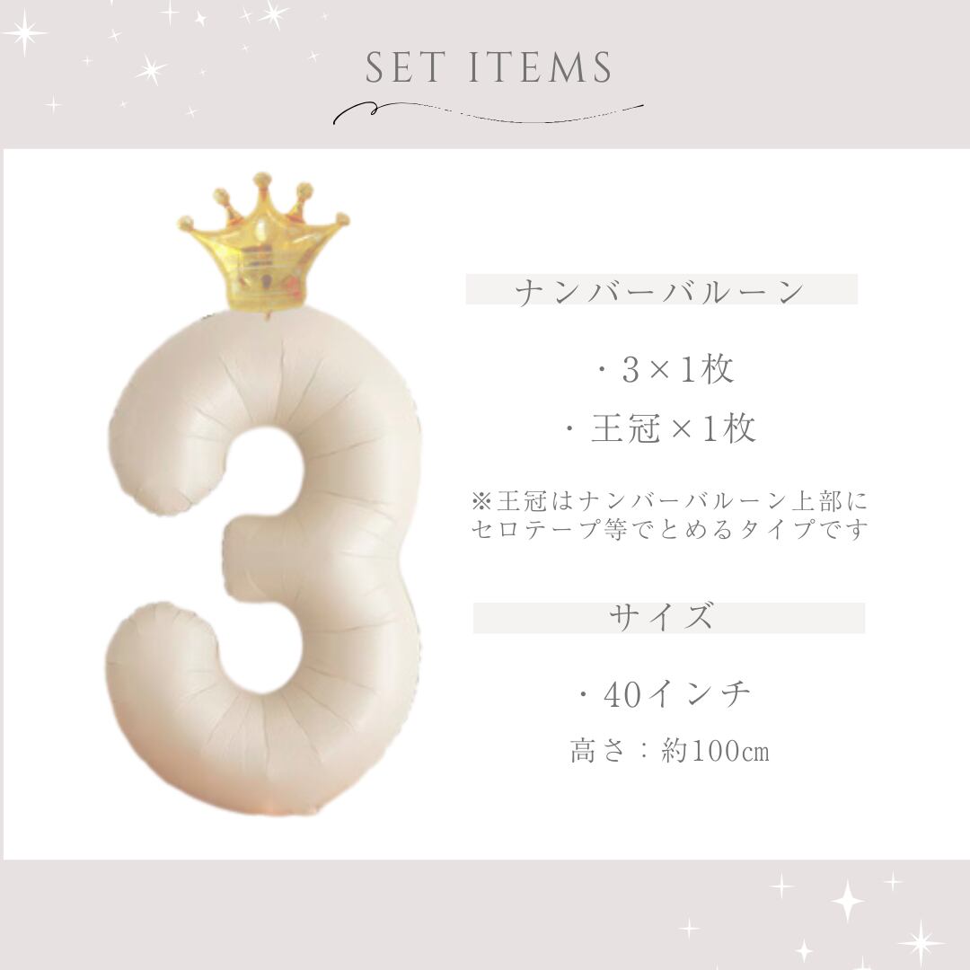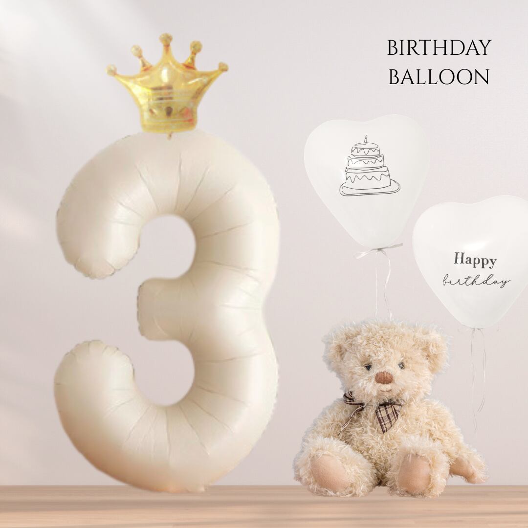 ・ナンバーバルーン(数字の3・色(IvoryBeige))×1枚